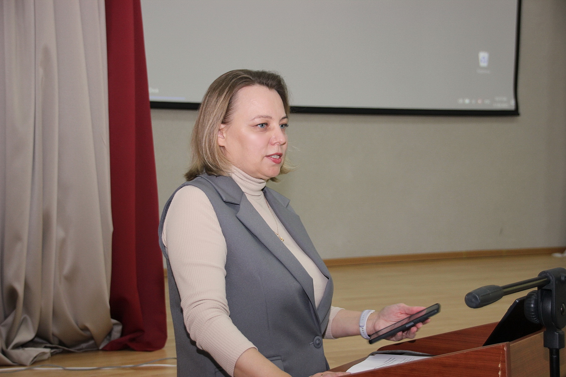 Об особенностях реализации в 2025-2026 учебном году проекта «Школа – вуз – предприятие» в Саровском политехническом техникуме рассказали заместитель директора Наталья Чиклунова и студент-третьекурсник Илья Ганюшин. А заместитель директора Саровского медицинского колледжа Оксана Золотова обобщила предложения для школьников, увлекающихся медициной и вопросами здоровья.