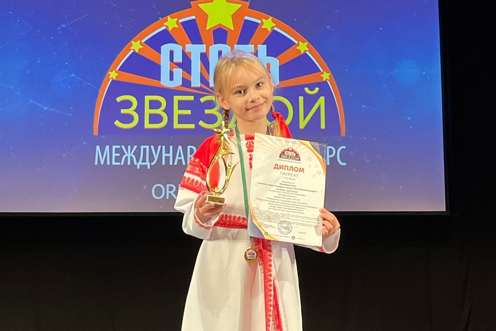 Аня выступала в номинации «Вокальное творчество, эстрадный вокал, 8-9 лет». Вдохновенно исполнив песню «Белый конь», она покорила членов жюри своим темпераментом и стала победителем. Педагог Елена Барышева отмечена благодарственным письмом за творческое развитие юных талантов.