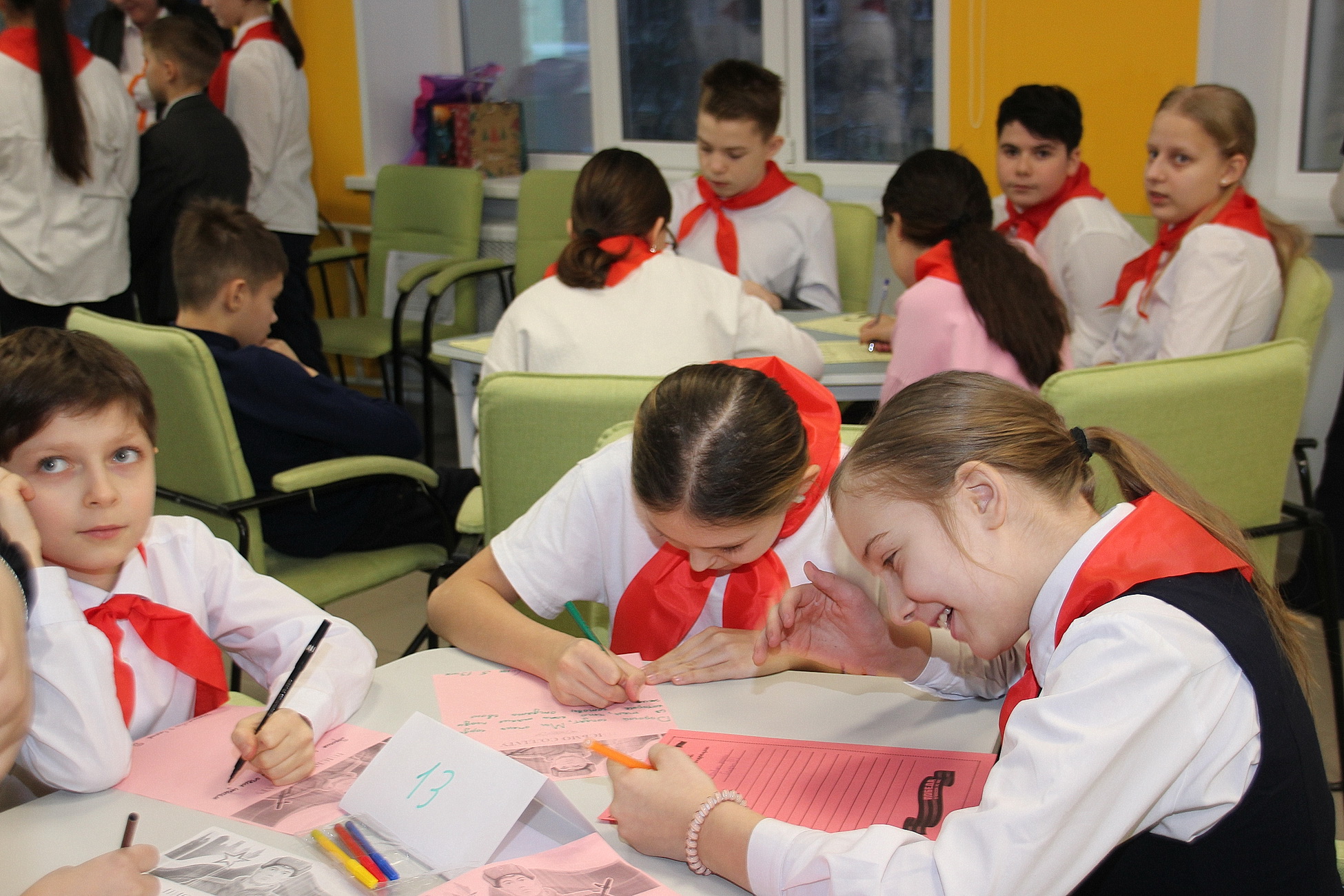 После веселой интеллектуальной викторины участники КТД написали письма бойцам, которые находятся на передовой или лечатся в госпиталях. Школьники постарались найти самые теплые и искренние слова пожеланий, чтобы каждый получатель детских посланий почувствовал внимание и поддержку.