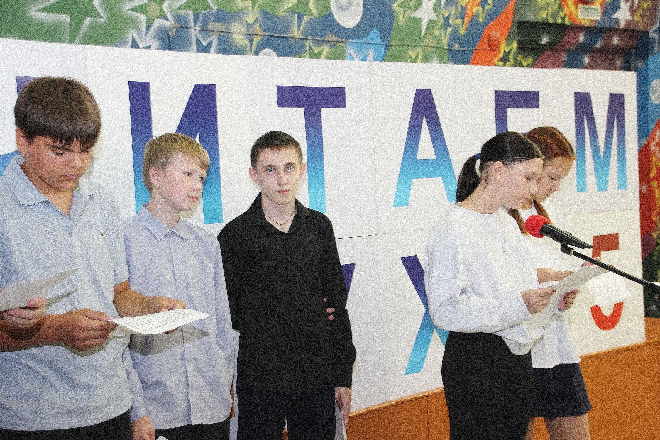 Ребята заранее поработали с текстами, поэтому чтение получилось проникновенным, щемящим душу и цепляющим сердца. Старшеклассники и педагоги слушали очень внимательно, сопереживая, а последние строчки эпилога поддержали искренними аплодисментами.