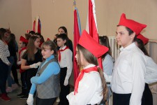 Пионеры готовятся к конкурсу знаменных групп и барабанщиков