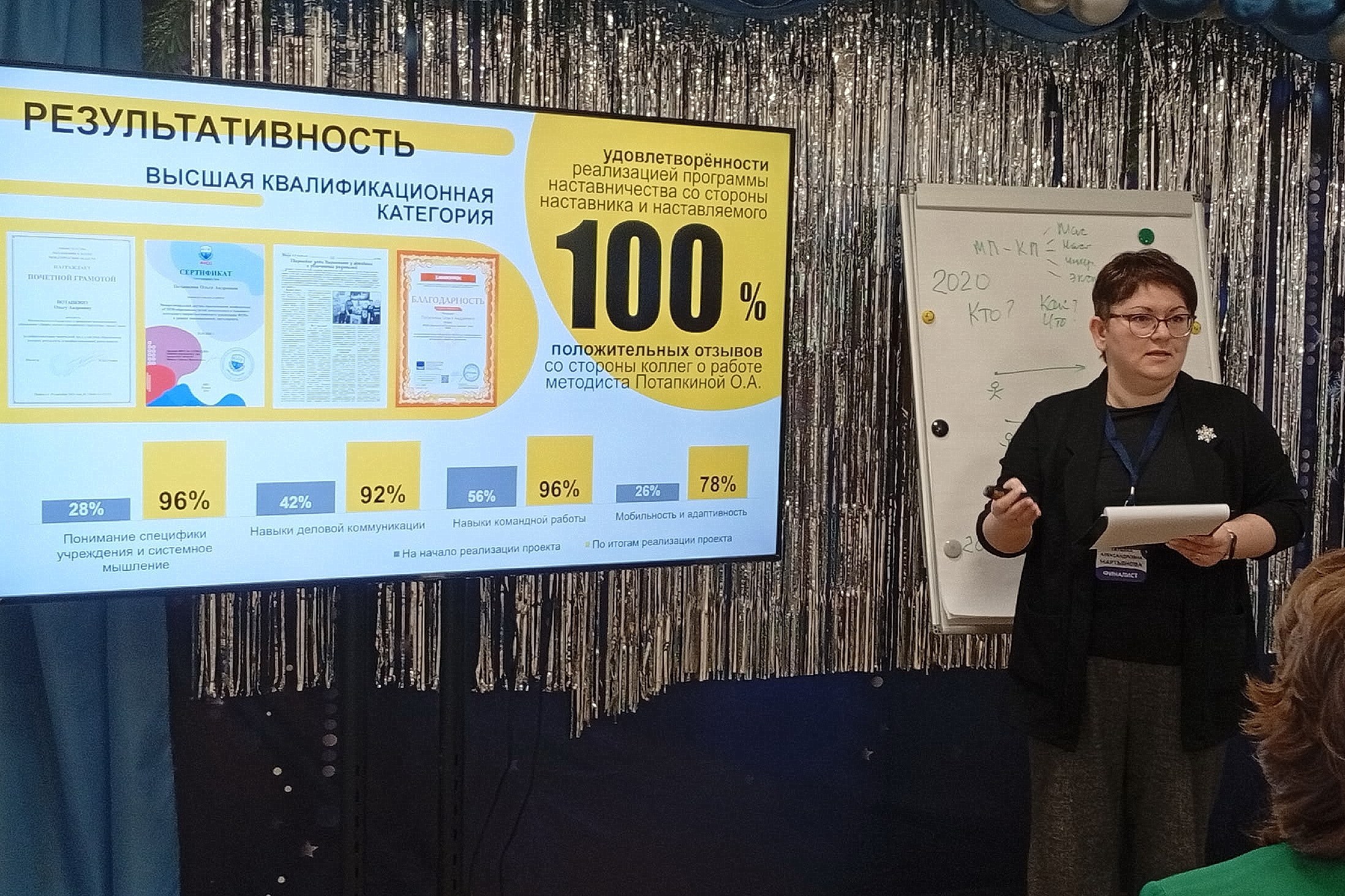 Для демонстрации опыта Татьяна Александровна выбрала парный формат – опытный наставник и молодой наставляемый – и рассказывала о взаимодействии с методистом Ольгой Потапкиной. На заочном этапе они представили развернутое описание проекта «Agile лаборатория методических решений», а в финале презентовали итоги работы за три года. Ключевые особенности лаборатории – короткие треки (спринты), оперативное планирование с фокусом на краткосрочные реальные методические задачи и мгновенная обратная связь.