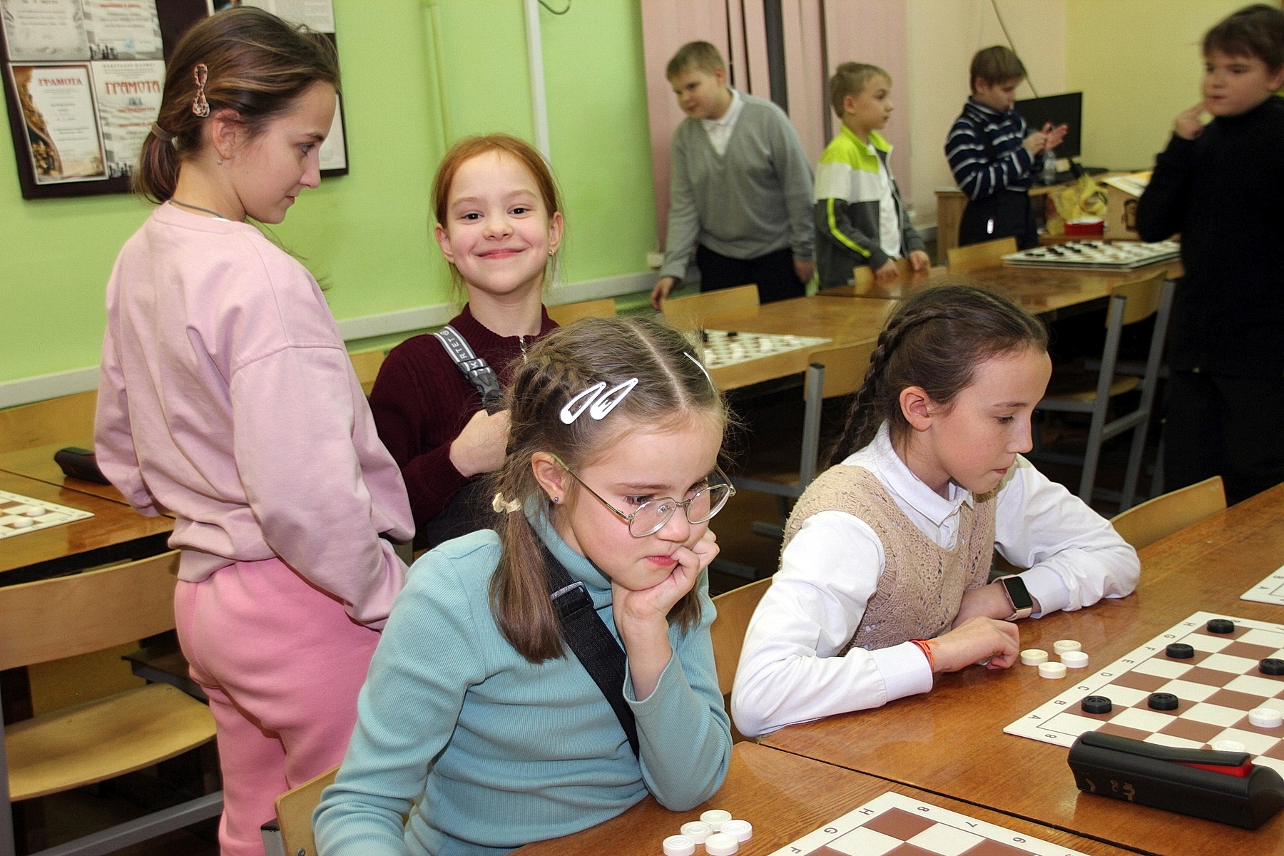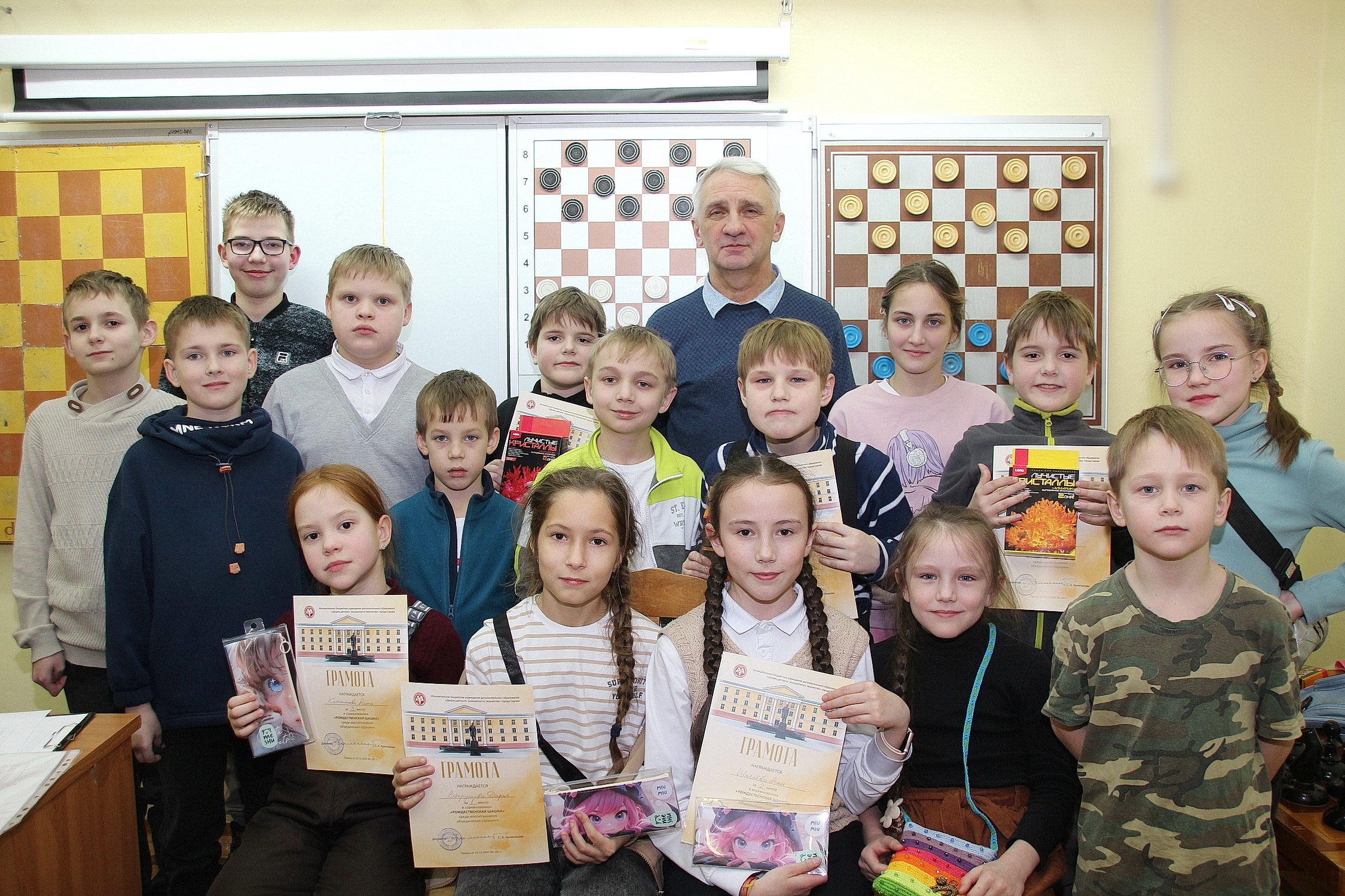19 декабря руководитель объединения «Шашки» Олег Васенькин организовывал, судил и награждал юных спортсменов, выступавших в двух группах. Всего в турнире приняли участие 47 человек, и для кого-то из малышей это были первые в жизни соревнования за шашечной доской.